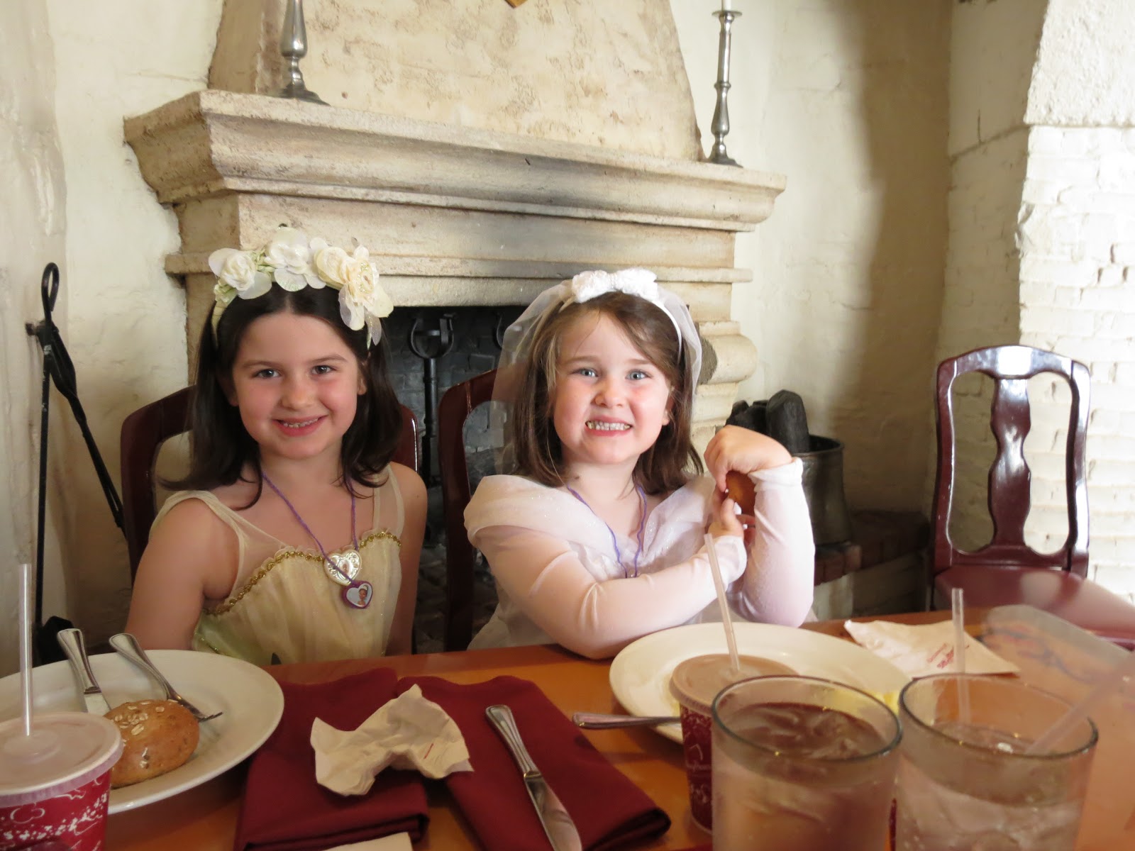 At lunch time the girls got all dolled up in their princess dresses to have a Princess Storybook Luncheon at Akershus restaurant in the country of Norway in Epcot.