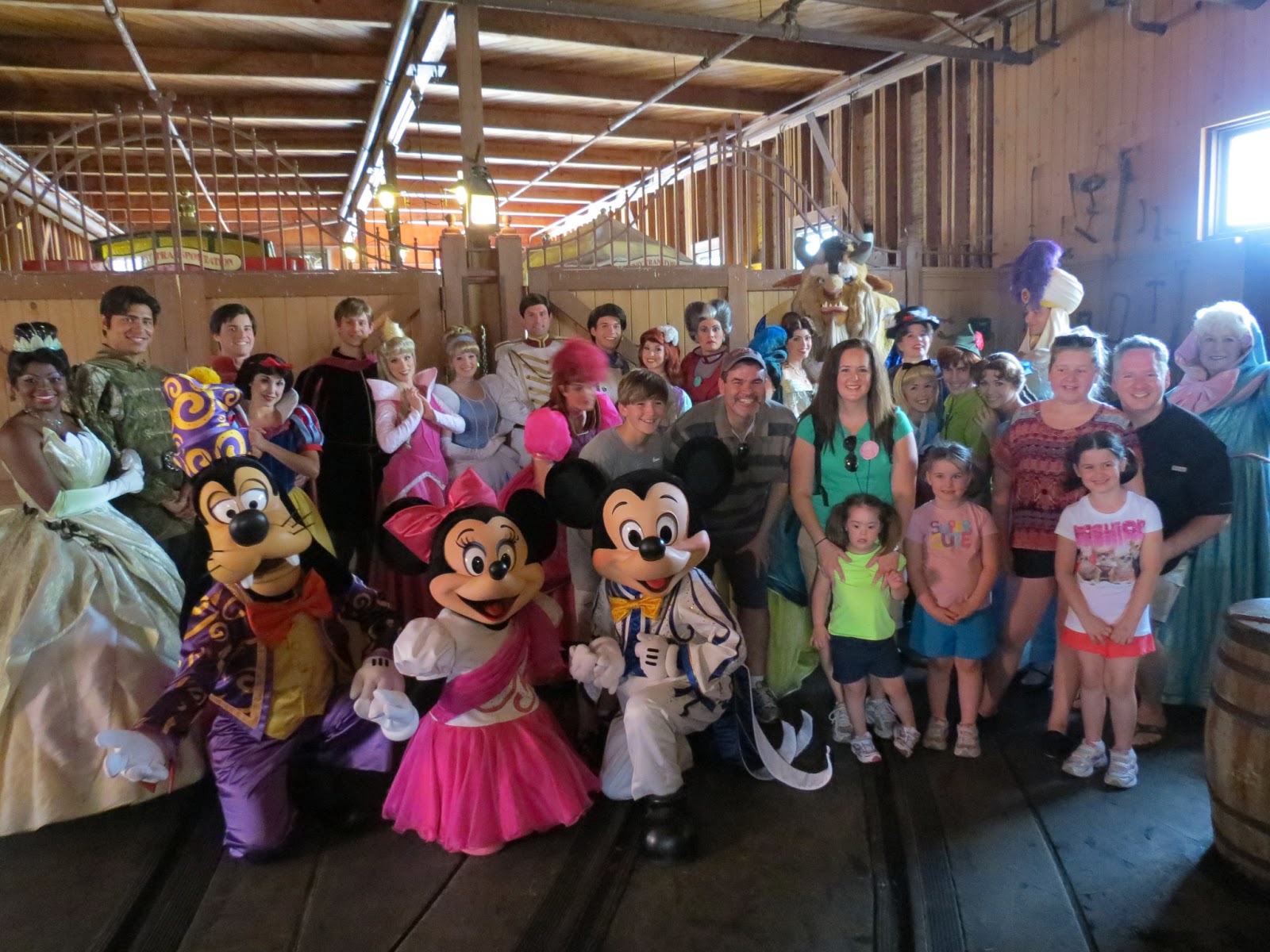 After lunch, we took the boat back to Magic Kingdom to meet a sweet friend from University of Mobile, Caleb Graham. He is VERY good friends with Prince Eric and arranged a special “meet and greet” time with some characters for us. He told me to have our group at the Car Barn in the Magic Kingdom by 2:30pm that day. Someone came to get us and took us to a door located right beside the Car Barn. As soon as Victoria and I walked through the door I heard a big, “Surprise!!!” There had to be between 15-20 different characters waiting in the room for us. It was, by far, the most special memory of our trip! I had to hold back the tears because that was such a sweet moment. All of our family got to meet every character, prince/princess in the room. Even Mickey and Minnie were there! They all signed our girl’s autograph books and then we took several photos with all of them. I think most of my family was in tears! This was definitely a memory from our trip that I’ll never forget! Thank you, Caleb, for arranging that special moment for us!