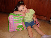 I had Elyssa take her photo by her backpack before she left today. She posed that way all on her own! Can we say cheesy? She is just a little model!