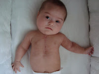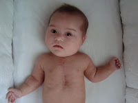 All my band-aids fell off of my boo-boo and I thought you might like to see my scar. The doctor told my parents that as I grow that my scar will not grow with me. In fact, it may only be a few inches tall when I get to be a big girl. Then you will hardly notice it at all. Isn’t that great?